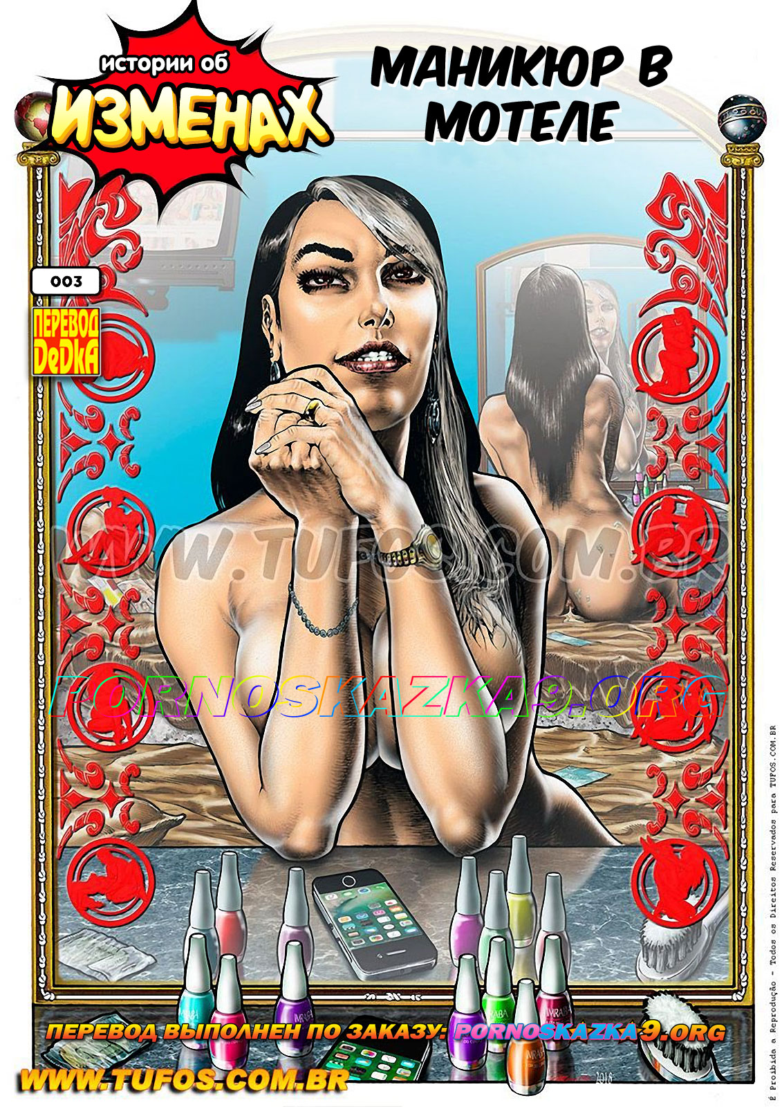 Порно комикс «Курорт. Часть 3.» Во время секса со своей невероятно требовательной любовницей, Джессикой, Джонни от сильного возбуждения допустил одну досадную ошибку и за это был отстранен ею от ее тела до утра следующего дня. Сама же Джессика тем же вечером, по случаю, завела себе сразу двоих новых любовников и, проверив их на деле, осталась вполне довольна, тем более, что они оказались ее земляками, и она планирует встречаться с ними и после возвращения с курорта. Ну а пока, курортная жизнь дарит новые приключения, не всем, конечно, а только тем, чьи задницы ищут этих приключений…
